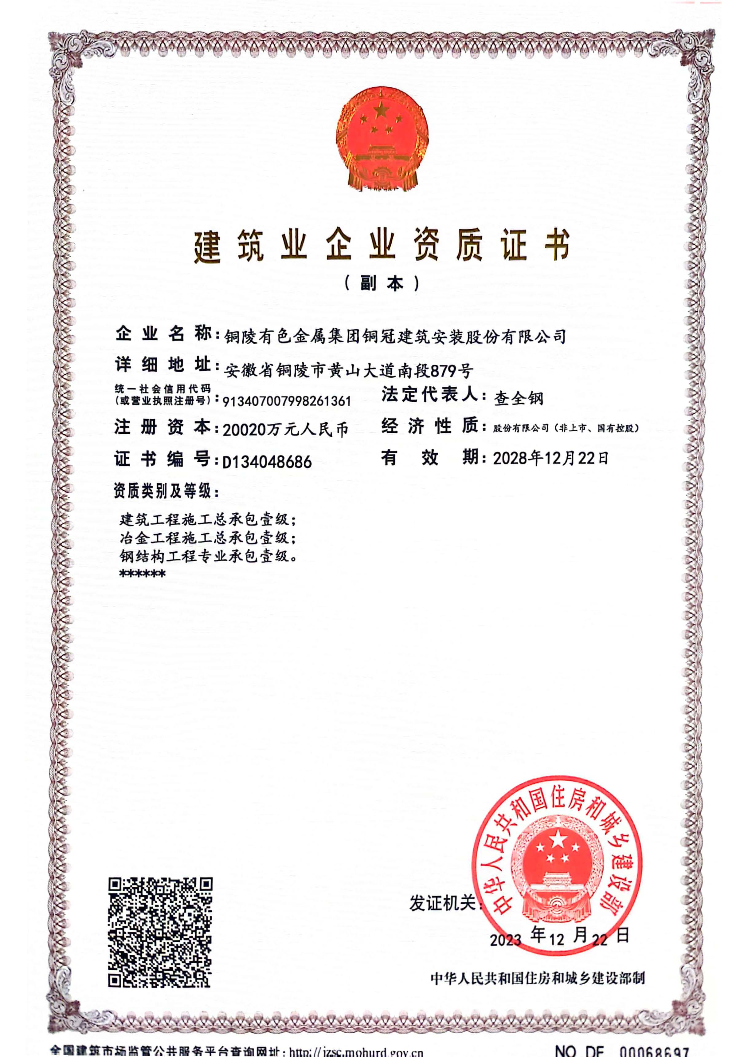 有色金屬工業(yè)建設(shè)工程質(zhì)量檢測(cè)機(jī)構(gòu)資質(zhì)證書